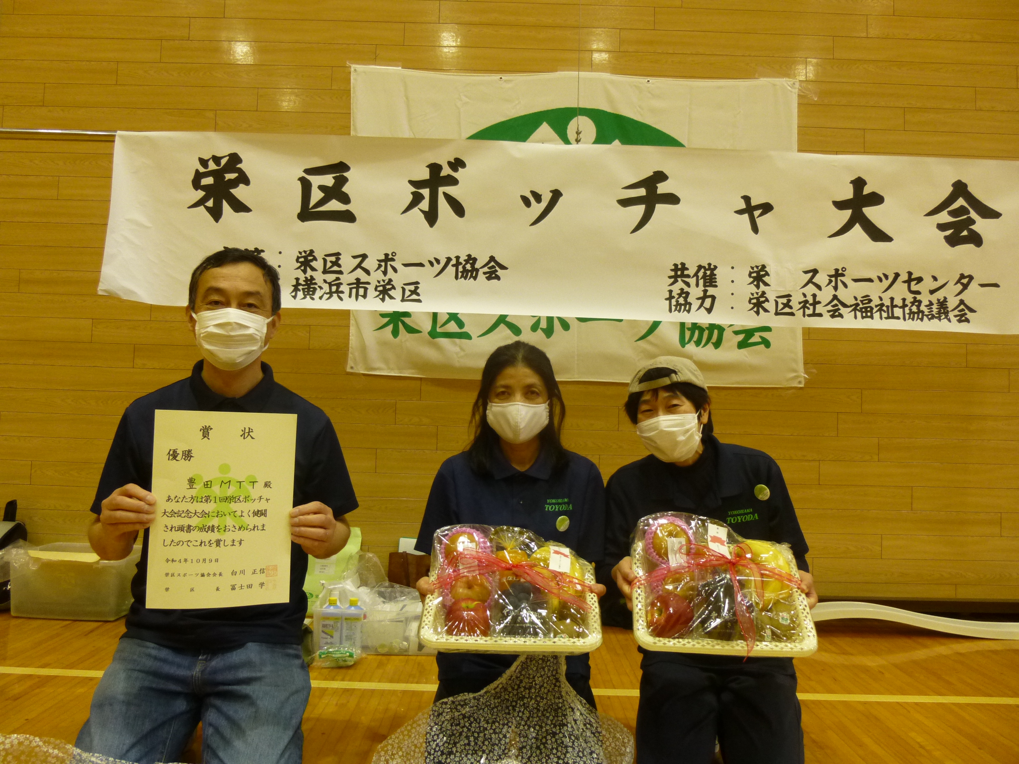 第1回栄区ボッチャ大会 記念大会の結果について 日時:2022年10月9日(日)9時30分〜受付 場所:上郷地区センター 体育館